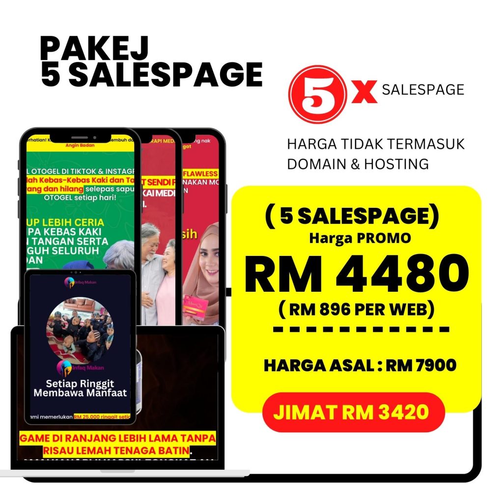 Anda boleh pilih pakej sebuah salespage sehingga 5 buah salespage. Dapatkan harga jimat dengan ambil pakej lebih dari sebuah salespage.