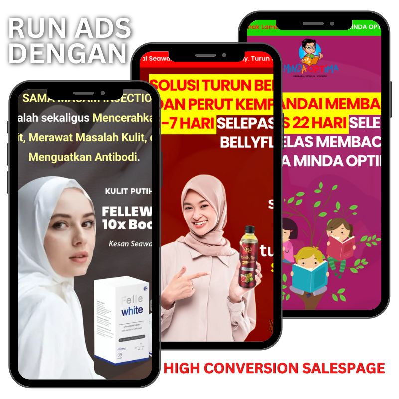 saya rekomen dapatkan Pakej 1 Salespage atau 2 Salespage untuk harga lebih jimat. Pakej ini sesuai untuk anda yang nak run 1 produk di fb / tiktok atau ig. Web siap 5-7 hari, boleh terus run ads hari seterusnya